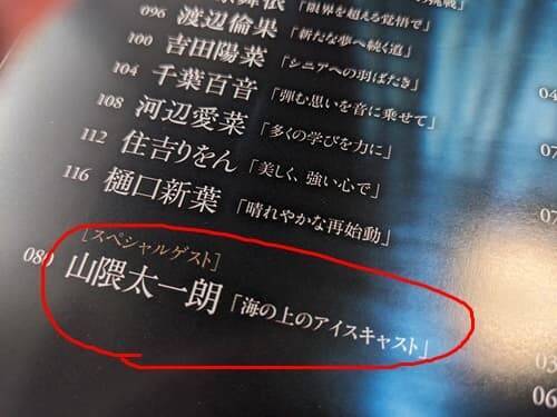 巻頭に宇野昌磨特集が写真とテキストで14ページ+ワンピース・オン・アイスの出演者も含めたカットが見開き2ページ。